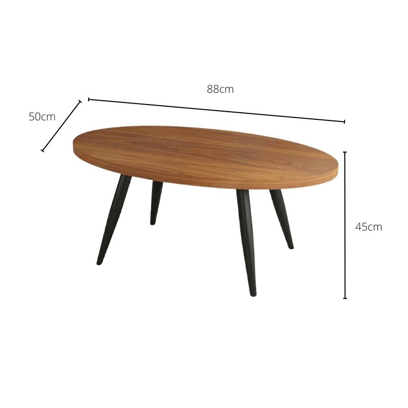 Mesa de centro ovalada en tono madera, ideal para utilería en sets, eventos o ambientaciones. Disponible solo 1.
