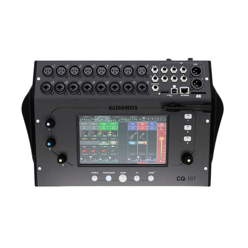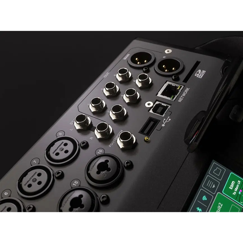 - 18 entradas y 8 salidas (Entradas: 8 combo XLR/TRS, 8 XLR, 2 TRS en stereo; Salidas: 6 TRS, 2 main XLR)