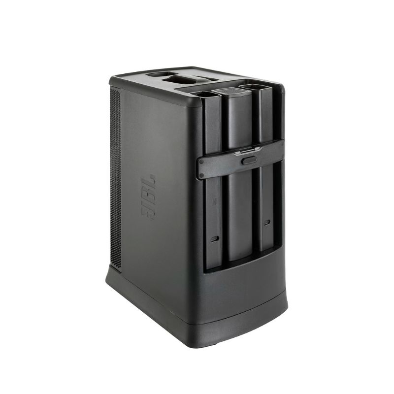 Sistema de sonido JBL todo en uno con batería, mixer integrado y Bluetooth. Ofrece sonido profesional con gran potencia, amplia cobertura y fácil configuración para eventos y presentaciones.